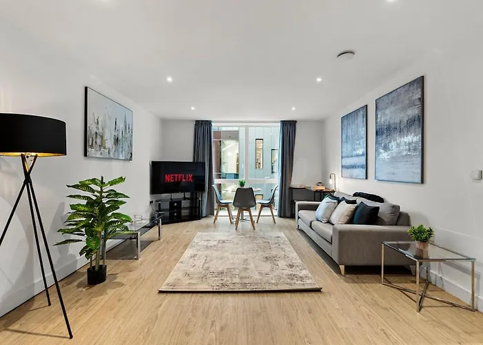 The 72 m² Central Leicester Luxury, 2 Bed 2 Bath, Sleeps 6 apartment is located 600 metres from Leicester train station and around a 5-minute walk from St Martins House Conference Centre.